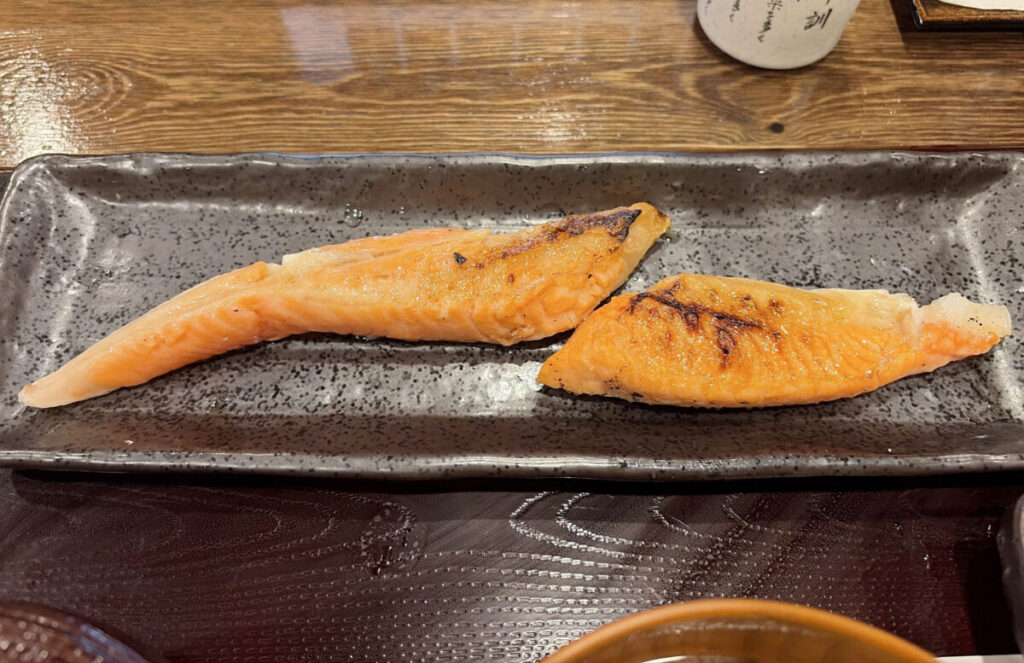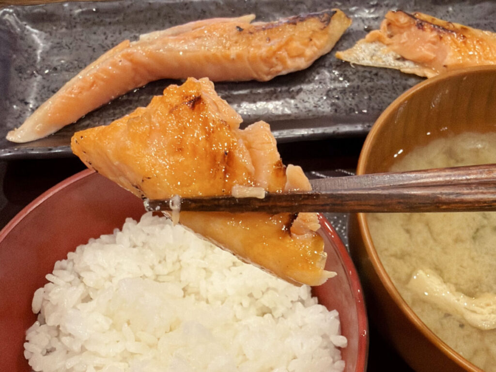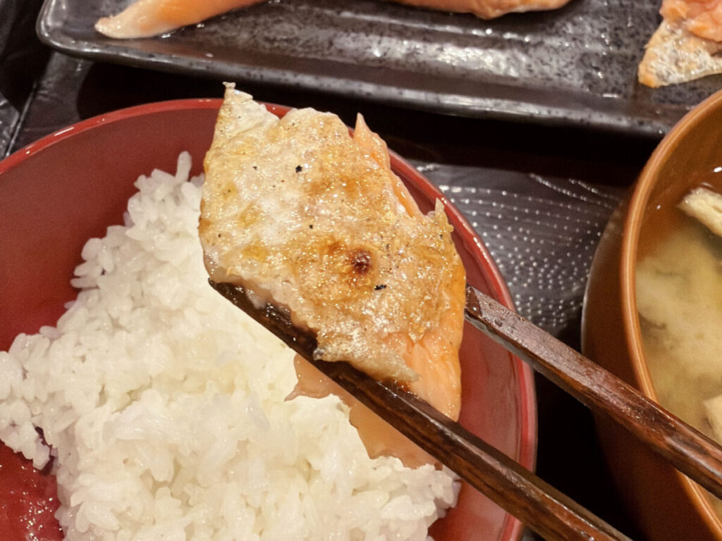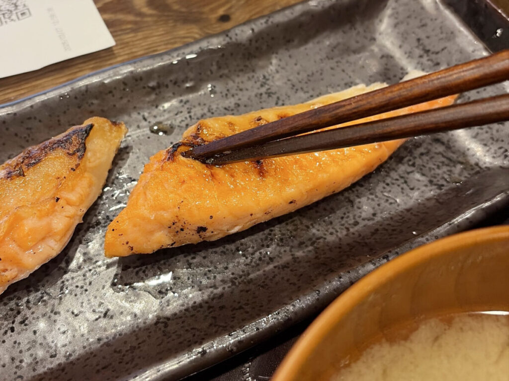 鮭は皮目がパリッと焼かれてますよ。
