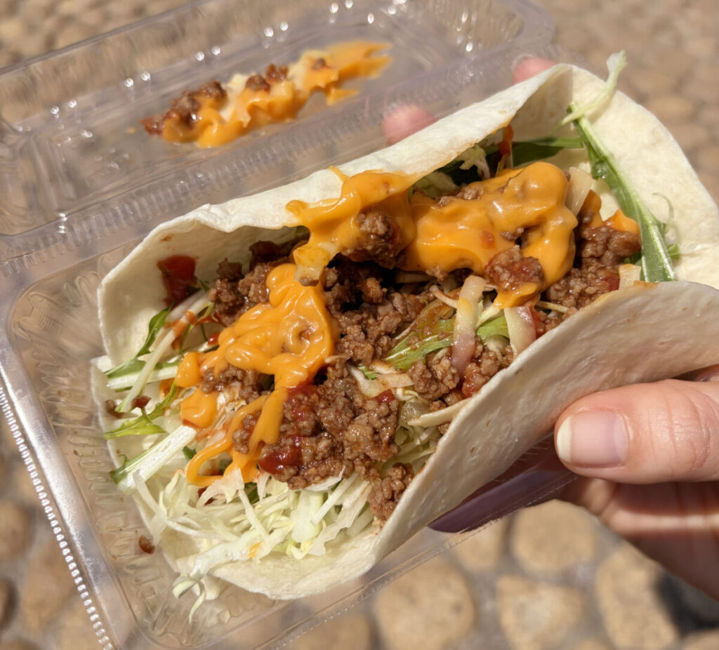 野菜にお肉に、具材もたっぷりで食べ応えあるタコスです♪