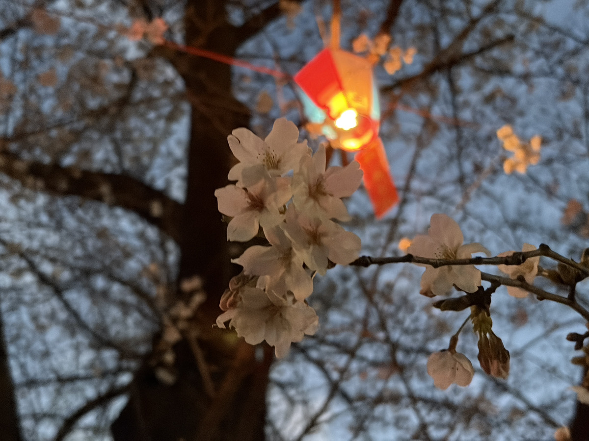 飛鳥山、3月28日(土)18時すぎもお花見に人出。19時半ごろの夜桜もにぎわってた!