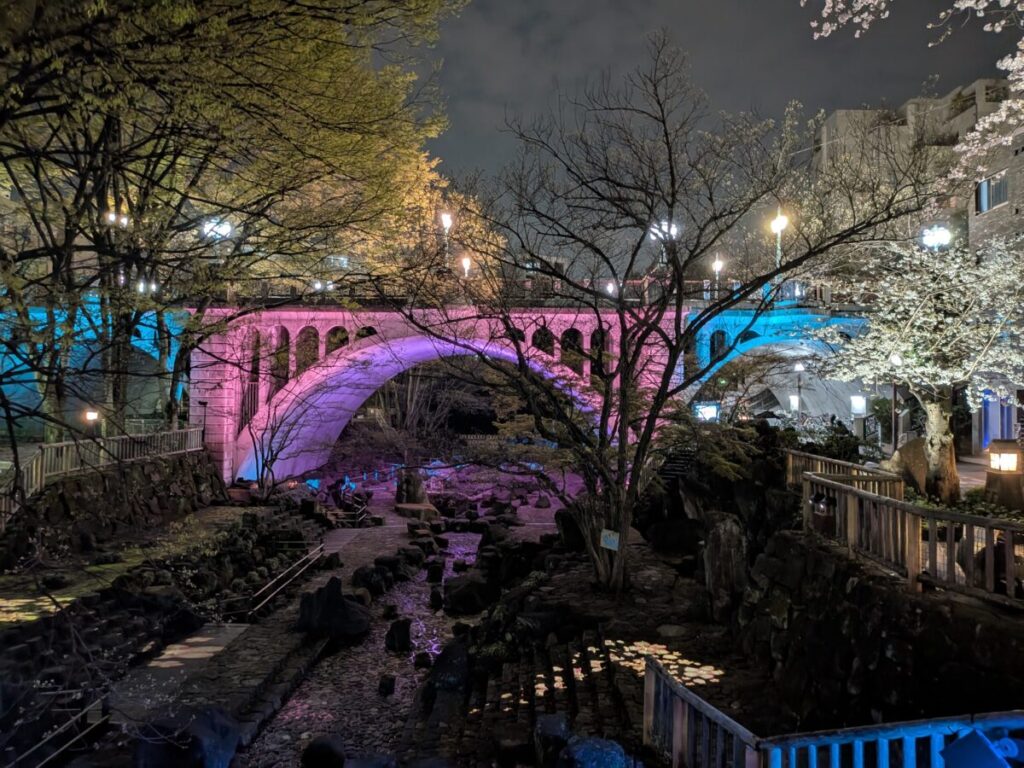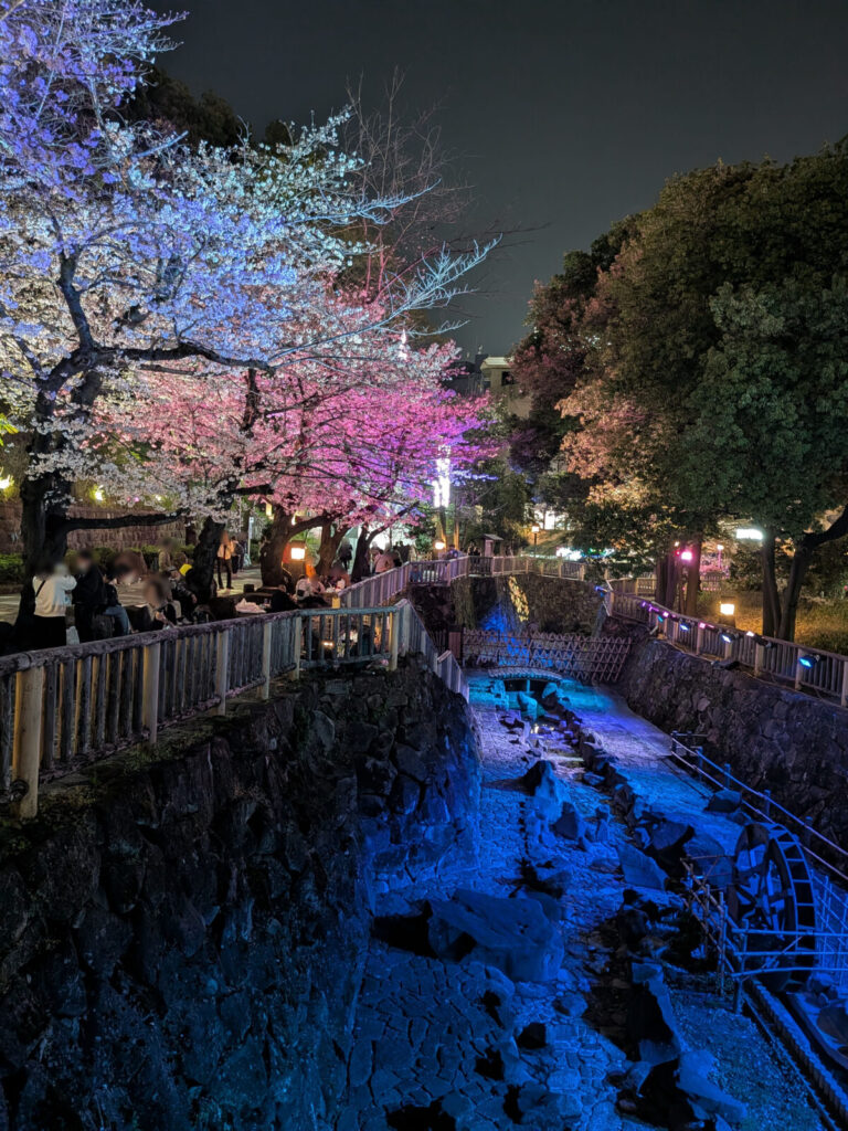 音無親水公園の桜が見ごろ!夜のライトアップがめっちゃキレイでした。