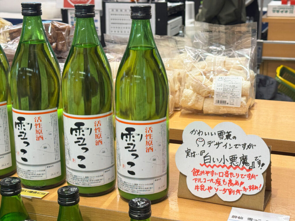 かわいいデザインだけど実は「白い小悪魔」だという活性原酒は、飲みやすいけどアルコール度数が高いらしい!