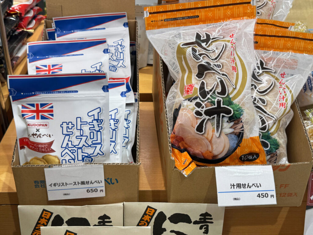 お。イギリストーストせんべいに、せんべい汁!
