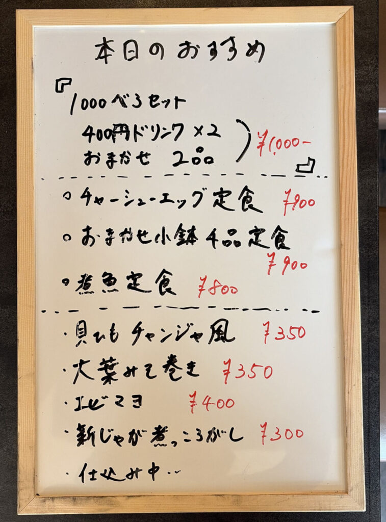 定食もあるようで、ちょい飲みにもランチにも利用できそう♪