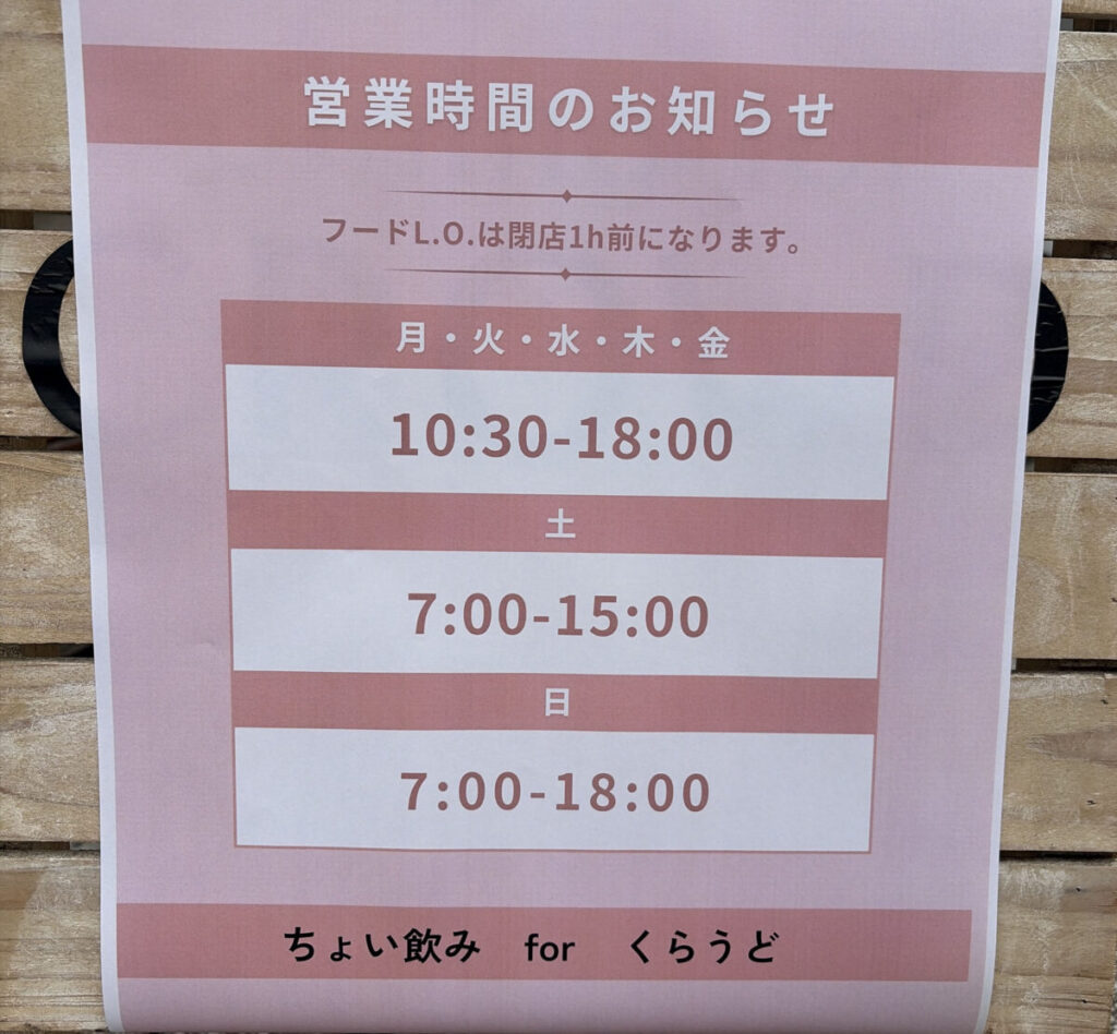 ちなみに営業時間はこんな感じ↓