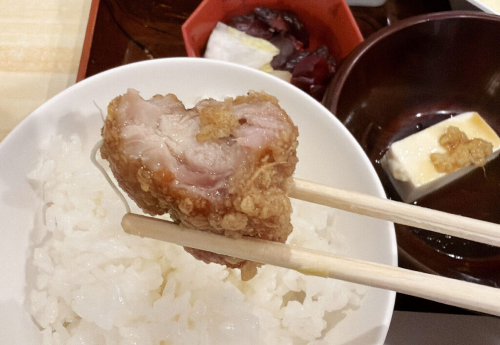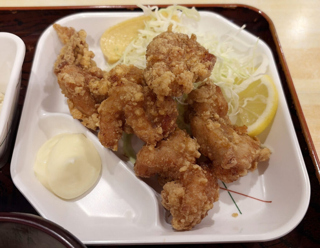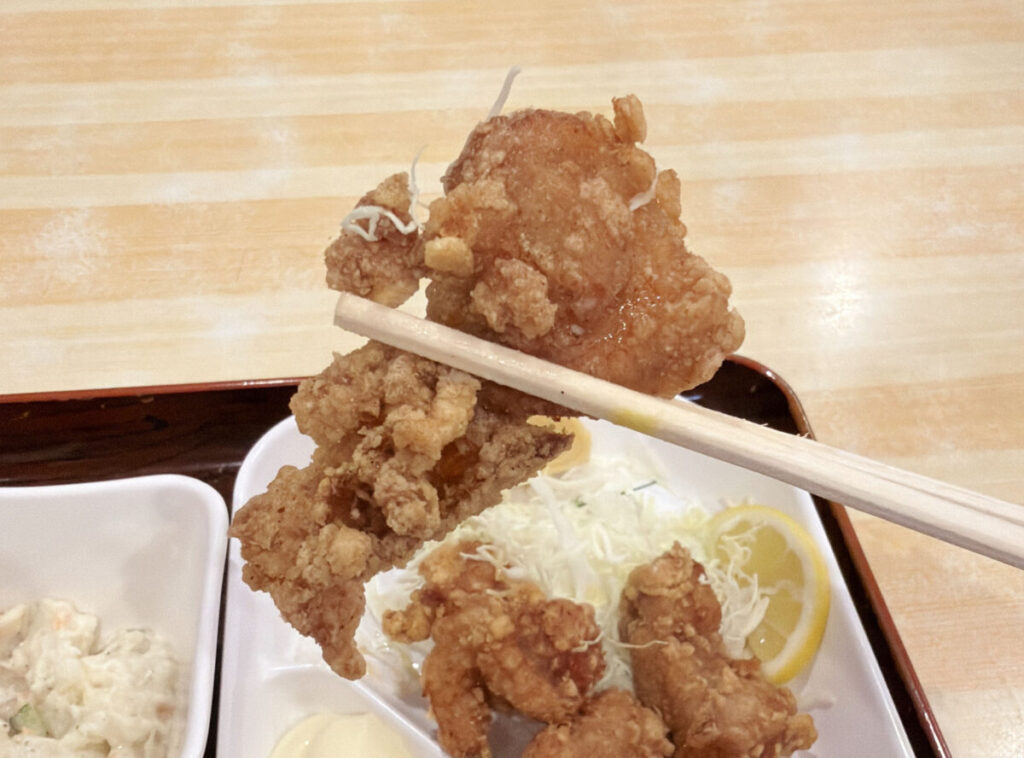 カラッと揚がったジューシー唐揚げ、ぺろり完食です。