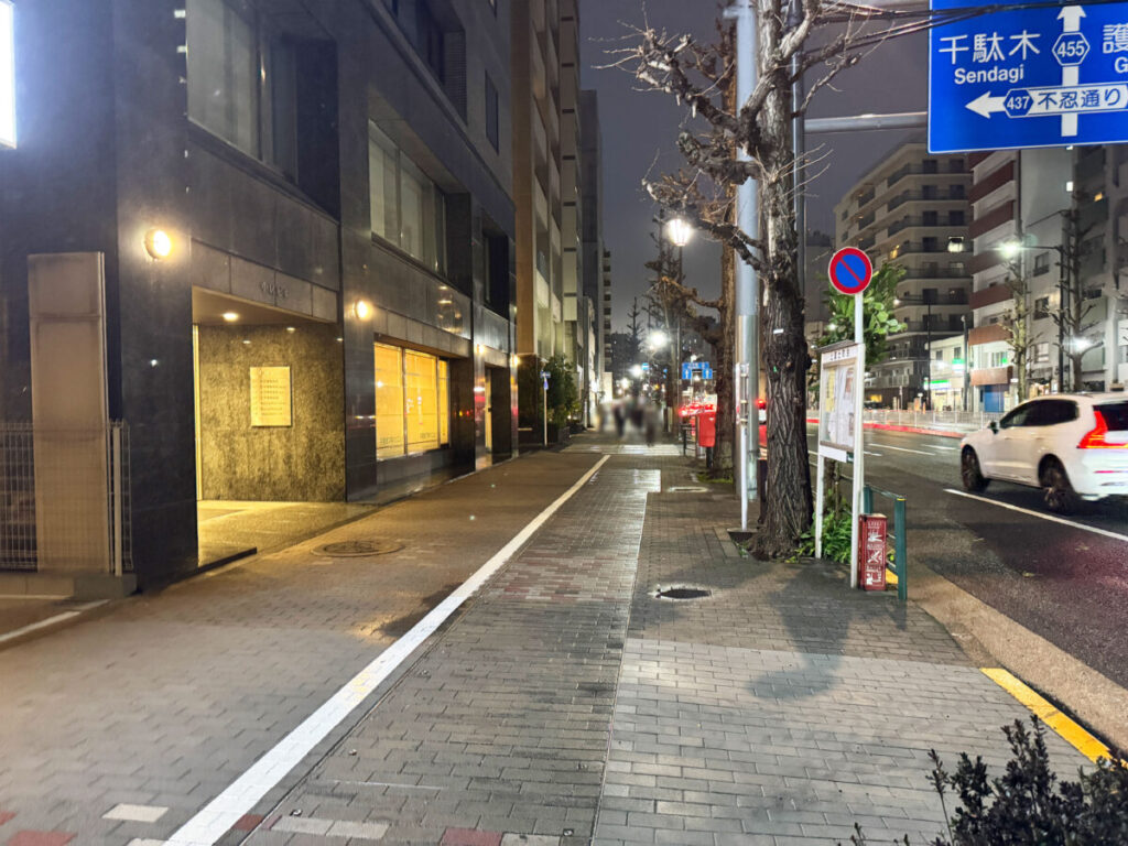 ビルを背にして右は駒込駅方面。進んでいくと「ファミリーマート 豊島駒込店」などがあります。