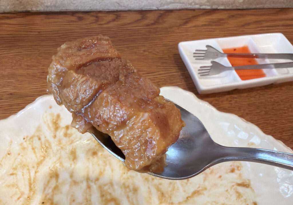 う~ん!ご飯の量をミニにしても、しっかり一人前!でっかいお肉で食べ応えを感じられるカレーでしたよ♪