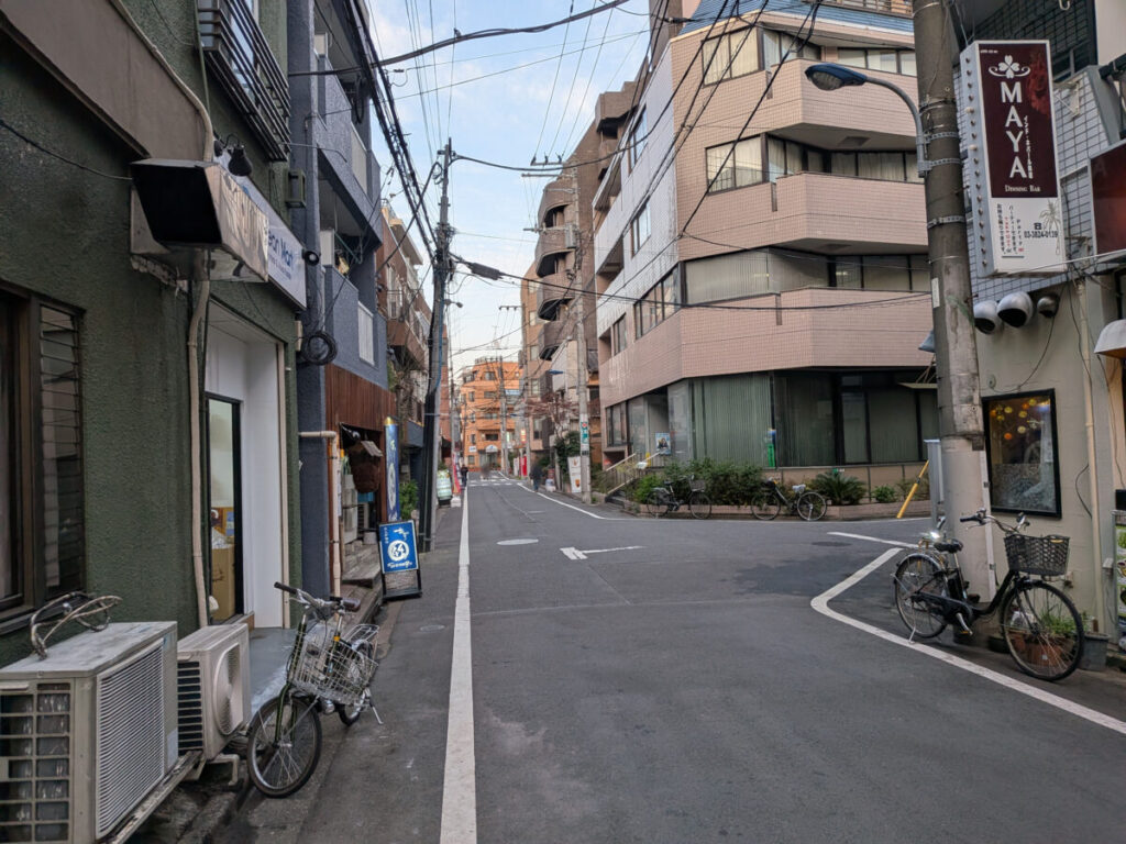 「中華料理 喜楽」を背にして右はこんな感じ。こっちにいくと、「御菓子司中里」があって、アザレア通りにぶつかります。