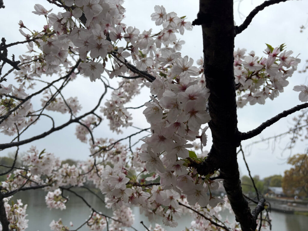 対岸から見るソメイヨシノも綺麗!天気が良ければ水面に写ったかな??