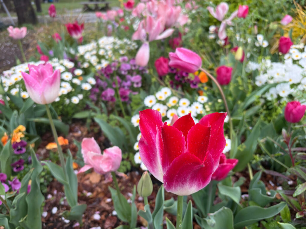 チューリップが本当に綺麗!ソメイヨシノは今が見頃のピークかな?