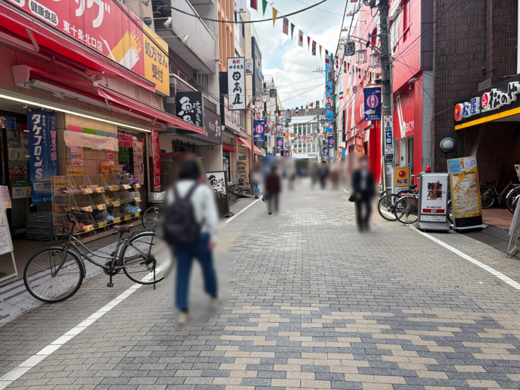 入り口を背にして右はこんな感じ。こちらは東十条駅方面で「日高屋 東十条店」や「Can★Do 東十条駅前店」があります。