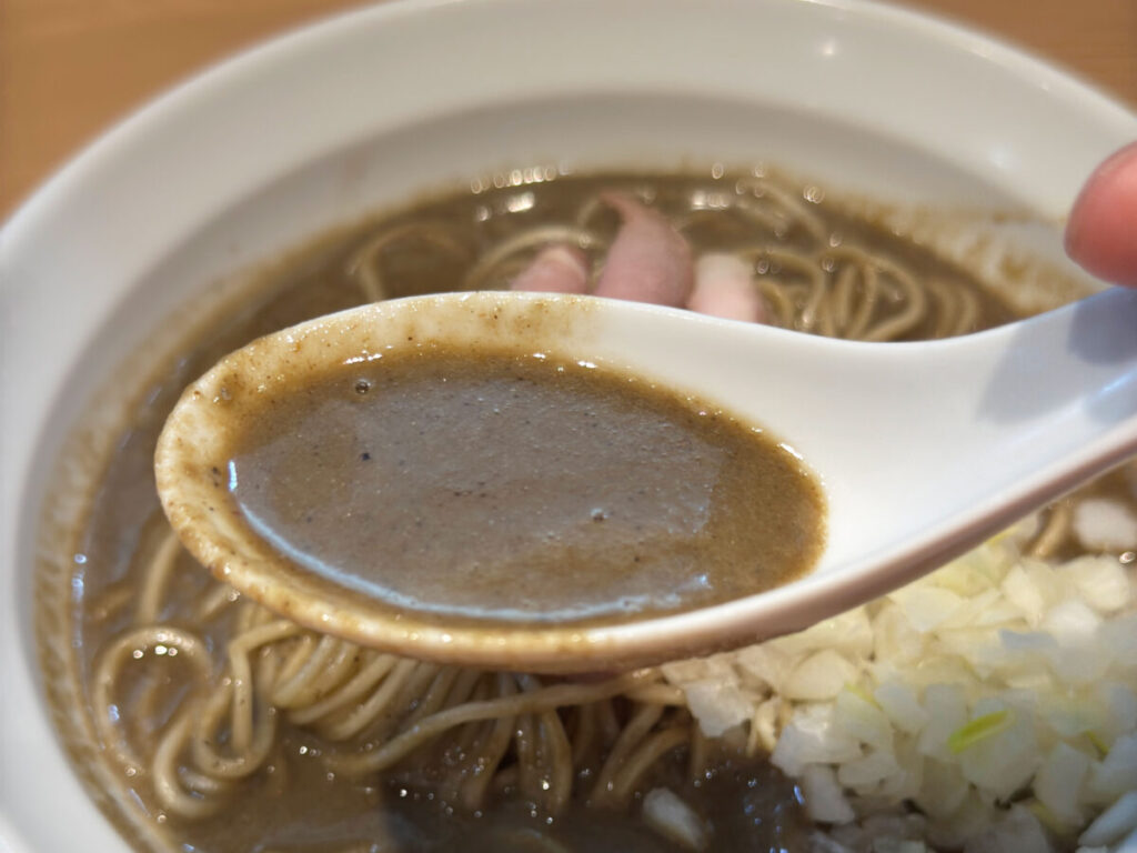 おお〜!濃さが自分でカスタムできるの最高じゃん!煮干しのパンチ+背脂のコク、ガツンとくる!