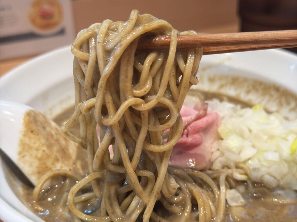 しかも、特濃なんでね、スープがしっかり絡んで、口の中が煮干しで満たされる…!