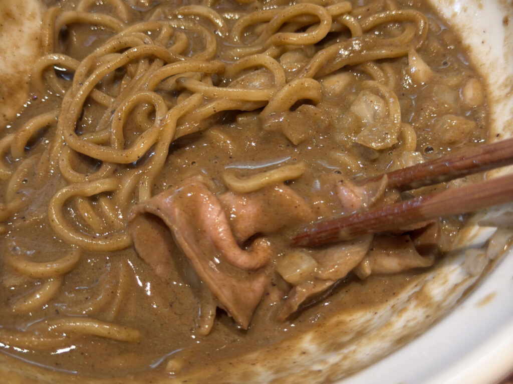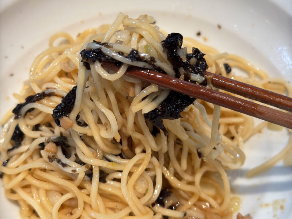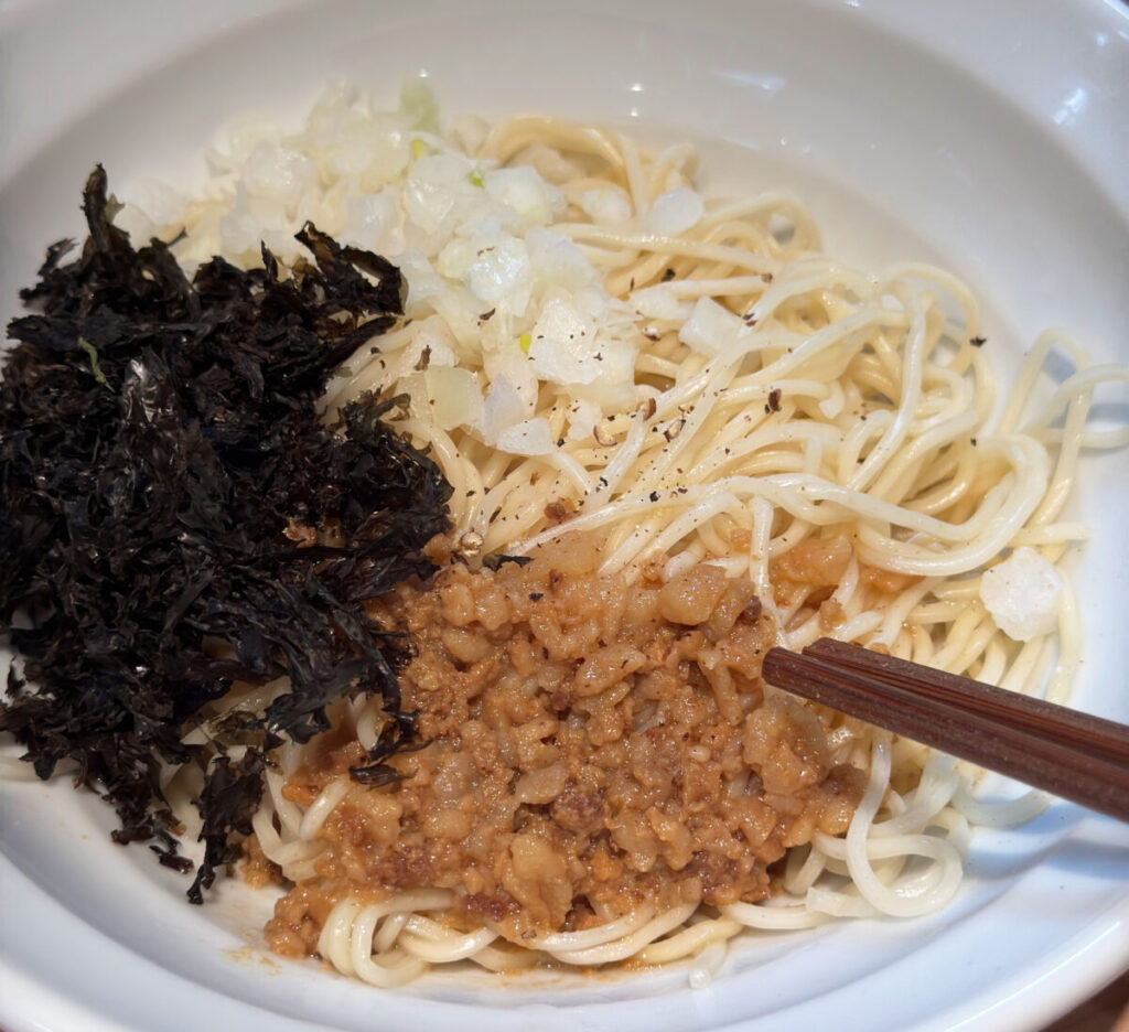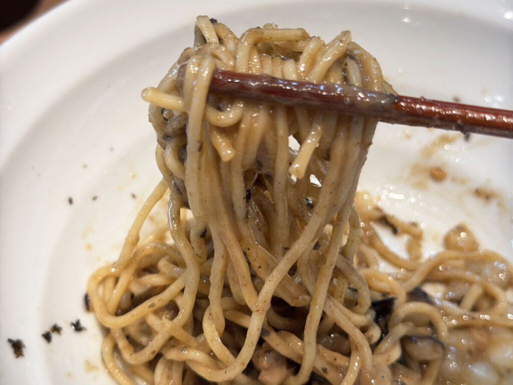 うわっ、背脂うっま!!!これはもう完全に油そば!さっきとは全く別ジャンルの一杯きた!