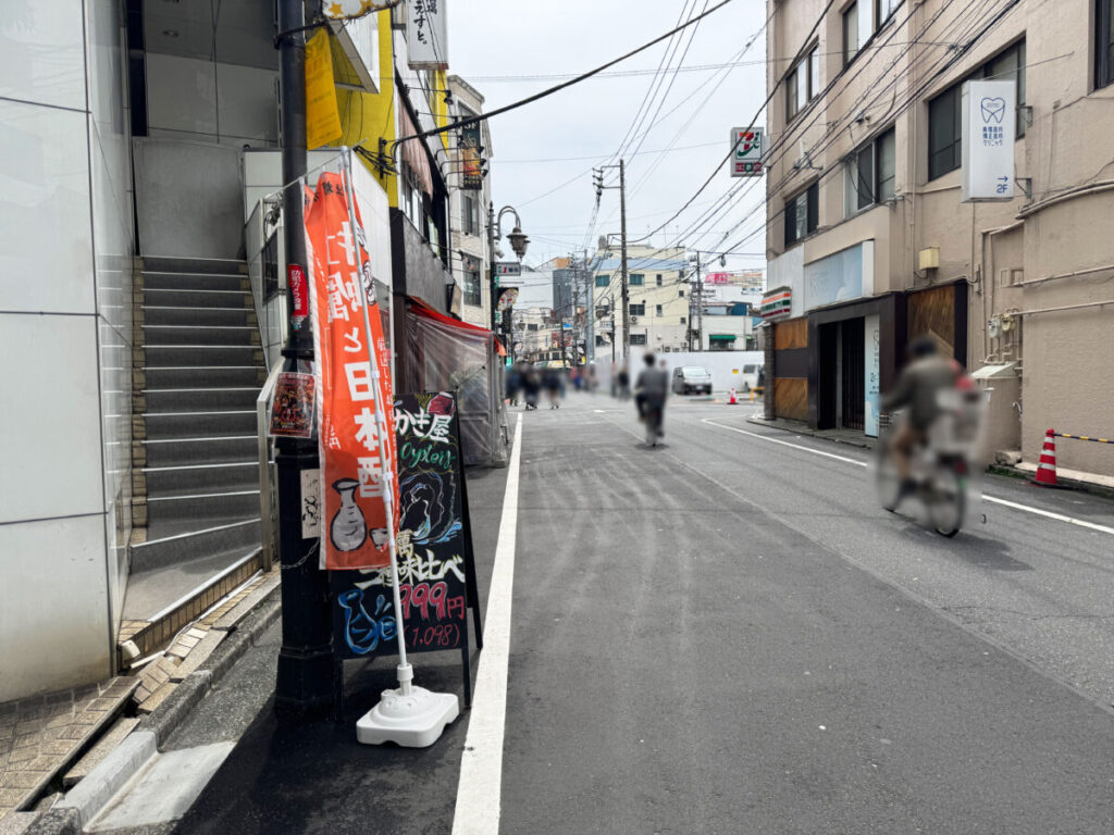 左です。こっちへ行くと「セブン-イレブン 北区赤羽1番街店」や「伊勢屋」。