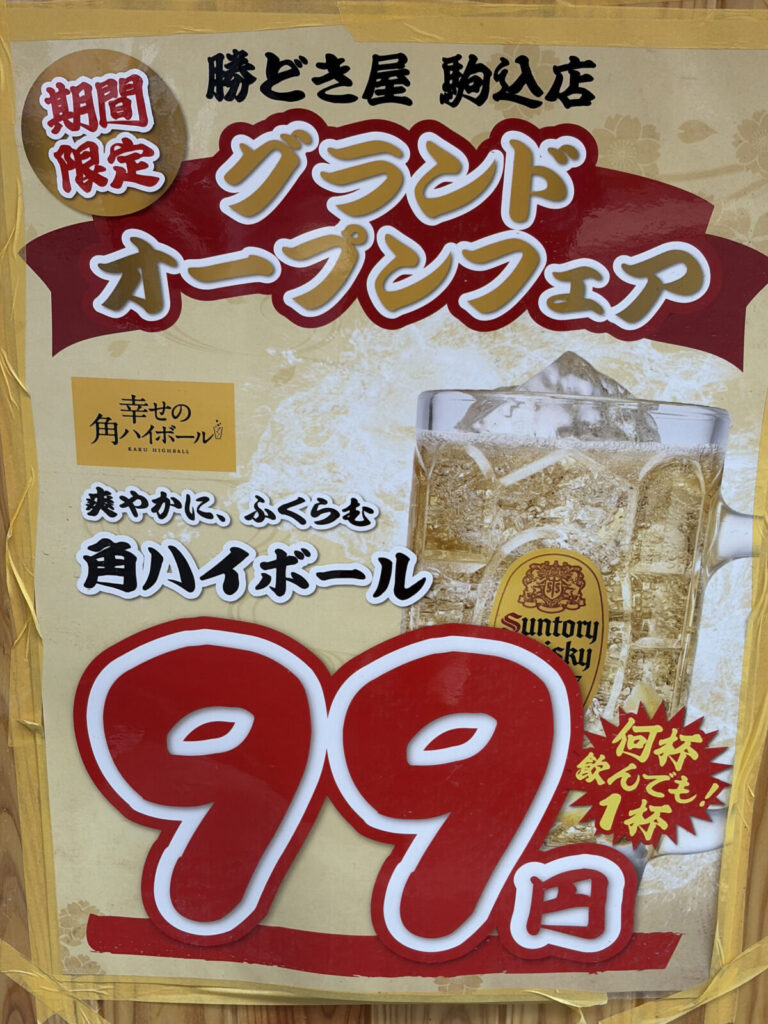 駒込駅東口を出てすぐのところに、居酒屋「勝どき屋」が4月9日に新オープンするみたい!