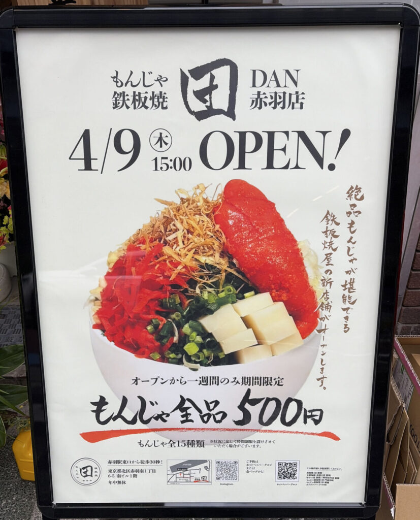 赤羽駅南改札を出てすぐのところに、「鉄板焼 団 赤羽店」が4月9日に新オープンしたみたい!
