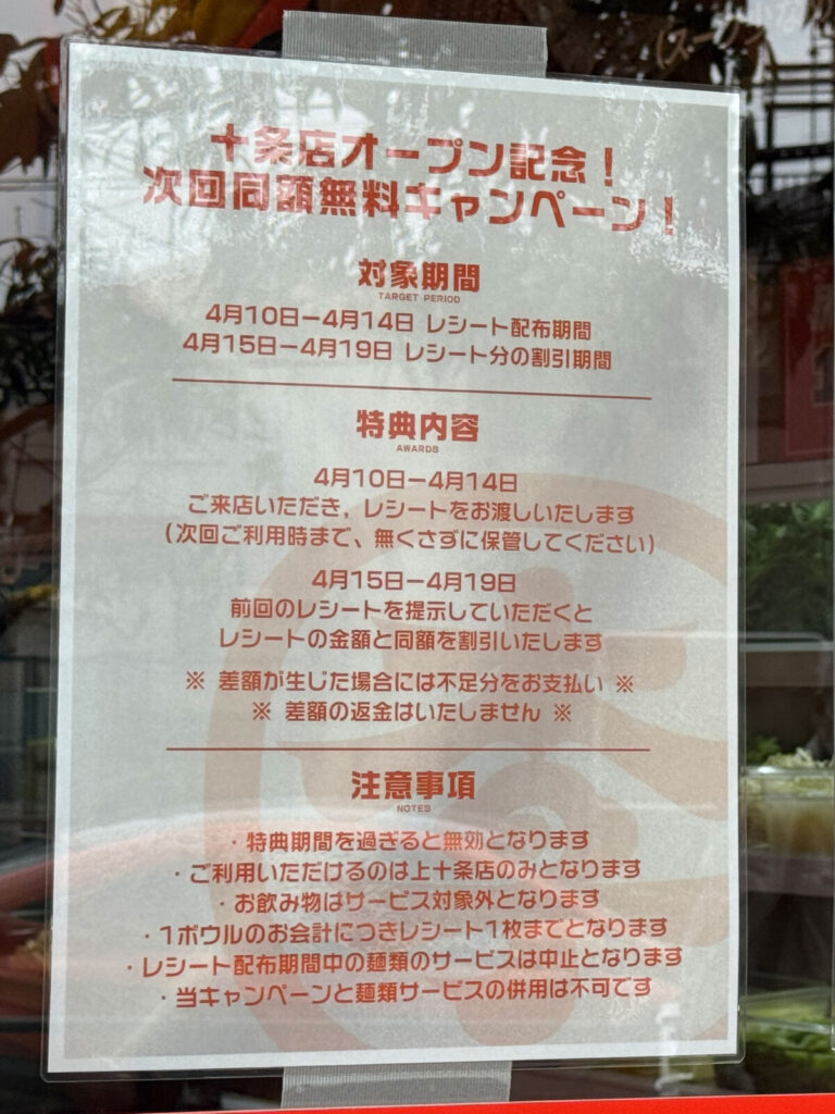 オープンキャンペーンも実施中みたい!4月10日〜14日のレシートを、4月15日〜19日に提示すると、レシート金額と同額分が割引になるんだとか!