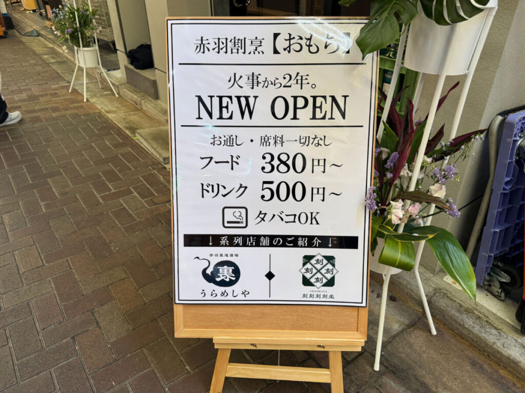 赤羽シルクロードに「赤羽割烹 おもち」が新オープンしていました!メニューと店内の様子も!