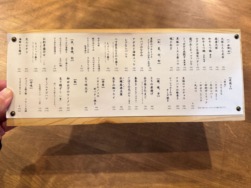 そして気になるメニューがこちら。おでんや、創作料理の数々。