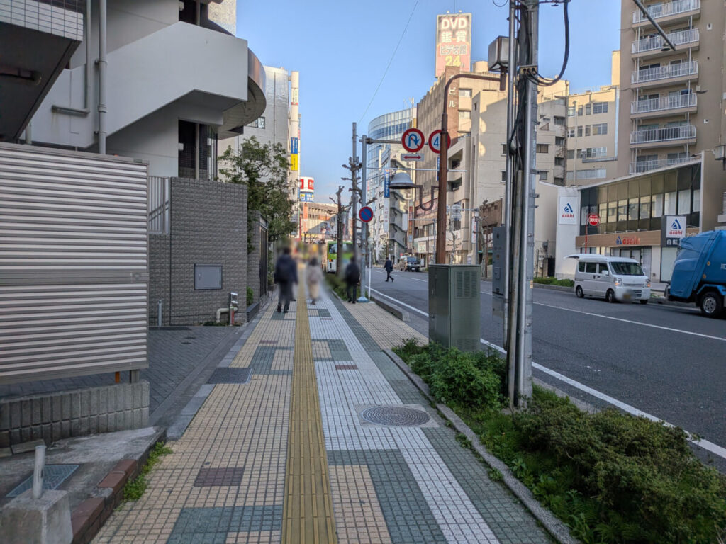 お店を背にして右はこんな感じ。右はこんな感じ。斜向かいに「ジョナサン川口駅前店」や「西友 川口本町店」。ずっと行くと、122号にぶつかります。