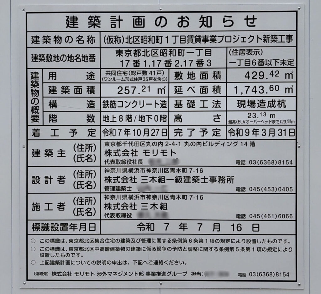住所は、東京都北区昭和町1丁目6(以下未定)で、以前「おさかなダイニング たらく」や「クリーニングオアシス」などがあったところ。