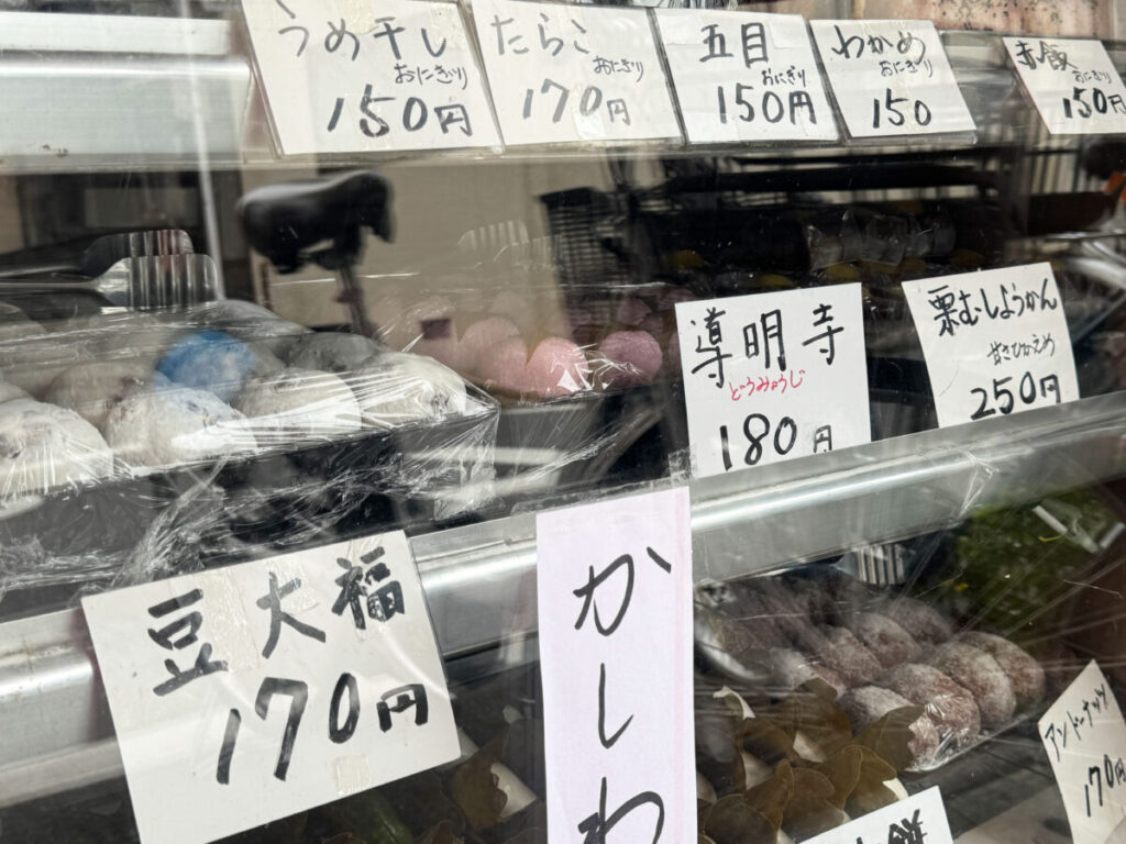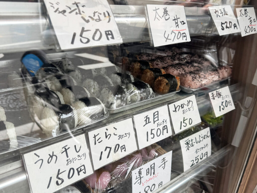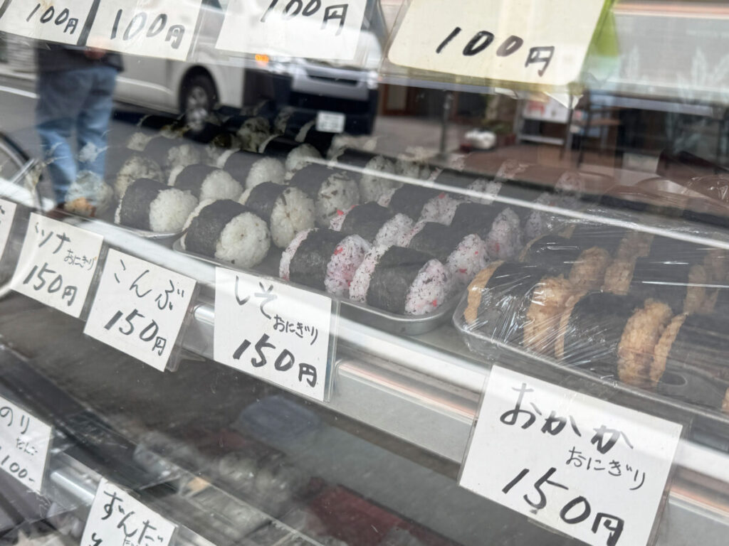 おにぎりも、種類が豊富で迷っちゃう!和菓子屋さんの”おかか”おにぎり、大好きなんだよなあ…。
