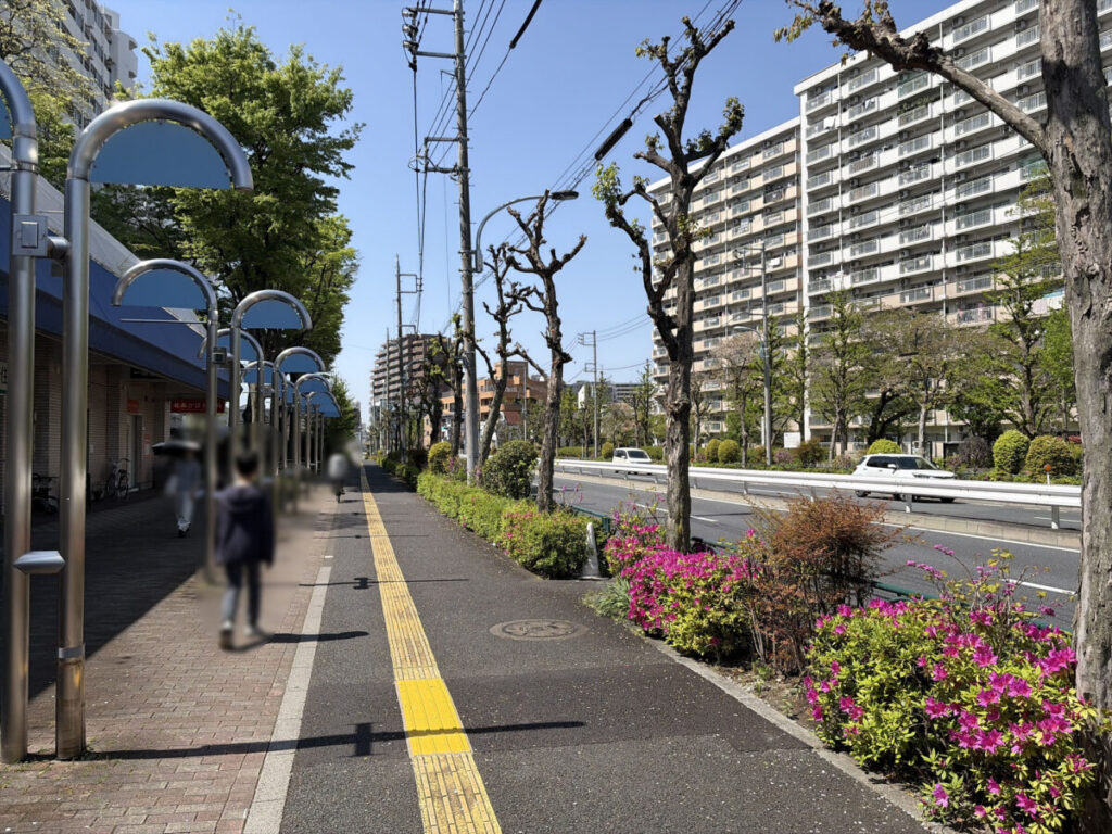音楽教室を背にして右はこんな感じ。進むと「サイクルベースあさひ」があり、その先は北赤羽駅赤羽口のロータリーがあります。