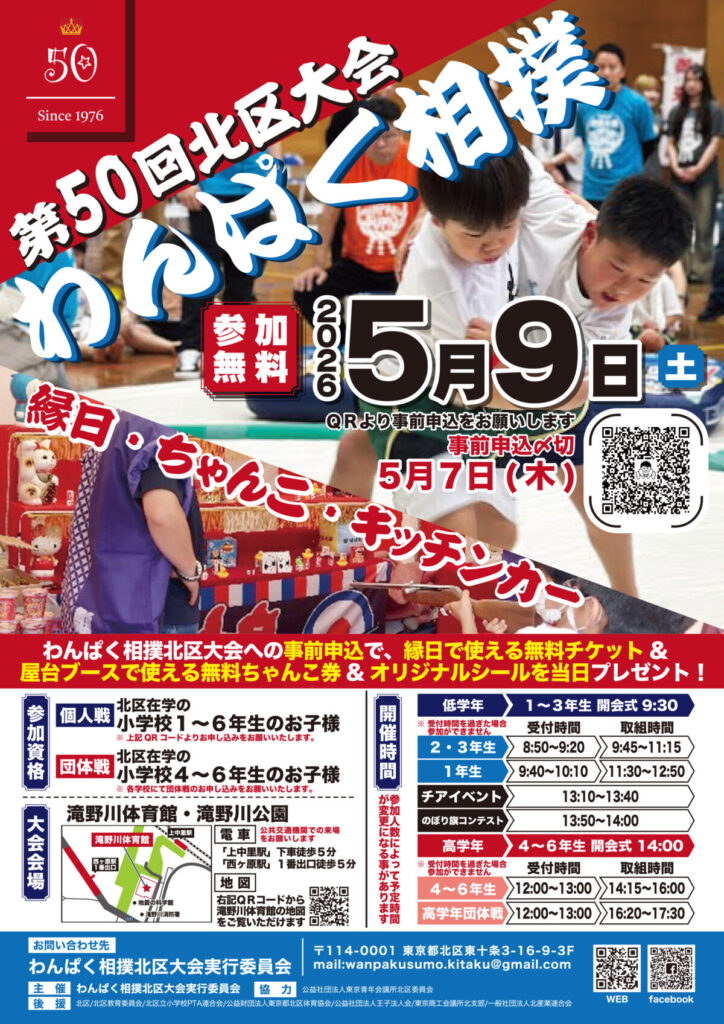 【北区】第50回わんぱく相撲北区大会が5月9日に開催されるみたい。