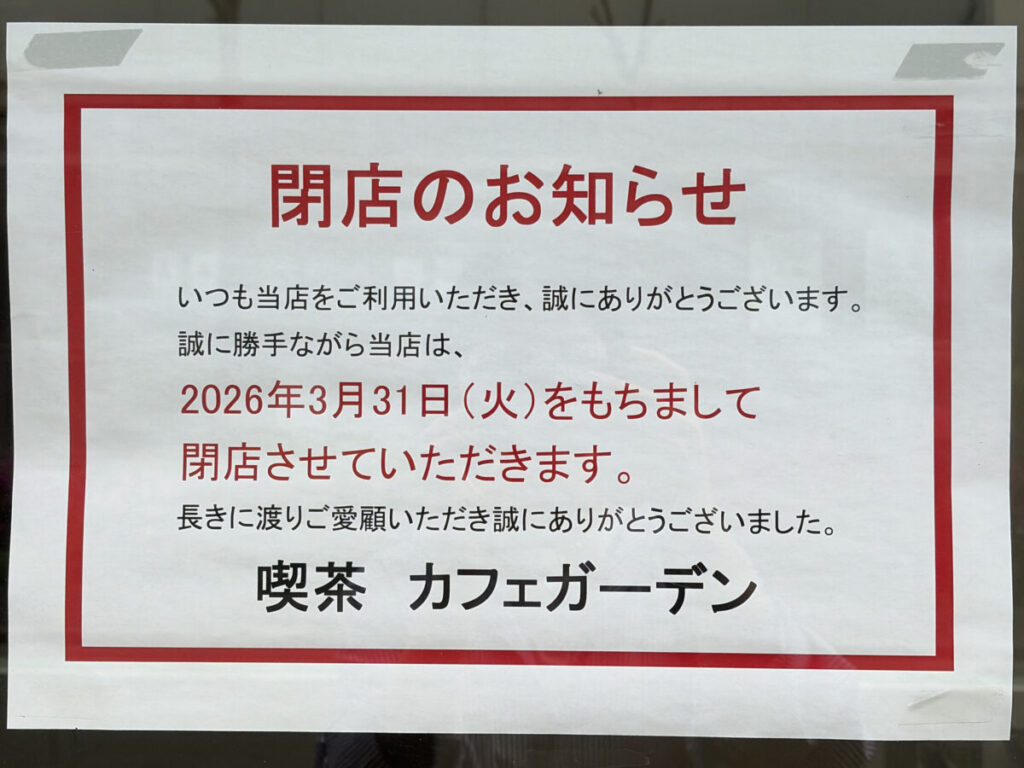 滝野川の旧中山道沿いにある「東京先端医療モールビル」内にあった喫茶店『カフェガーデン』が、3月31日をもって閉店したみたい。