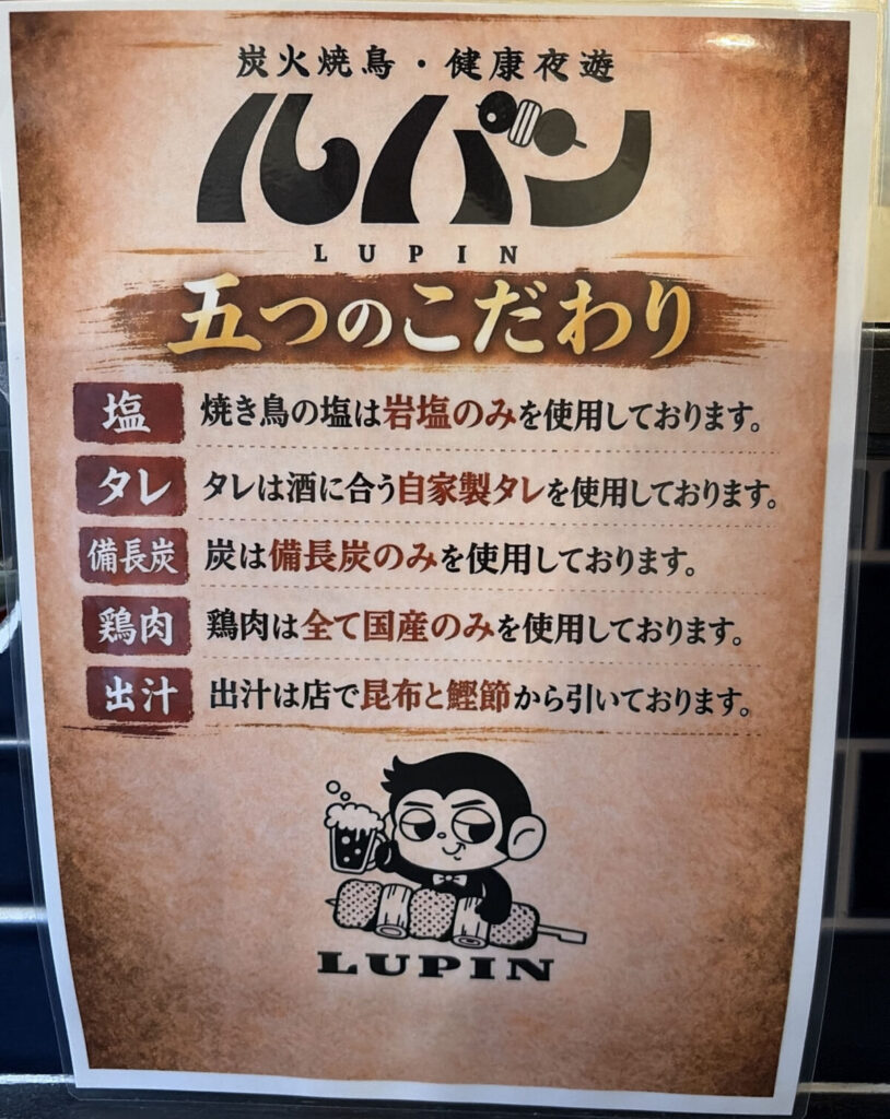赤羽に「炭焼とお酒 ルパン」が新オープンしたみたい!店内やメニューを見てきたよ。