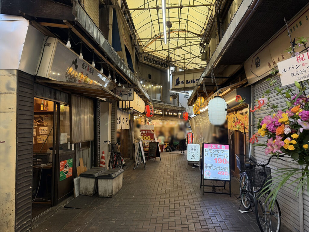 お店を背にして右はこんな感じ。進むと「きぶんや本店」や「赤羽シルクロード トロ函」があります。