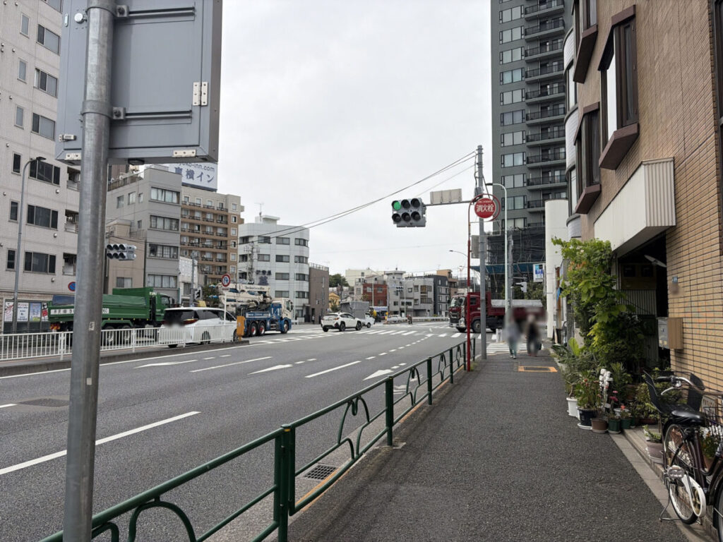お店を背にして右はこんな感じ。すぐに赤羽岩淵駅の3番出口は、赤羽交差点があります。