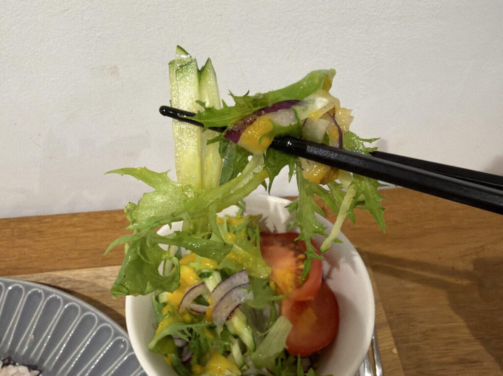 うんうんっ!タマネギや野菜の甘さが感じられるドレッシングだ~。