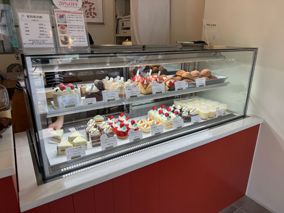 店内に入って目の前にあるショーケースに、ケーキがずらっと並んでいますよ!
