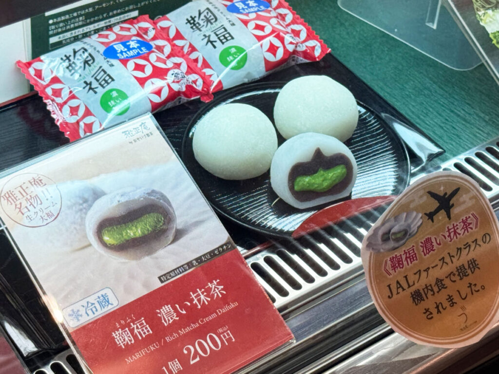 JALファーストクラスの機内食で提供されたことがあるという「鞠福(まりふく)」生クリーム大福も気になる〜!