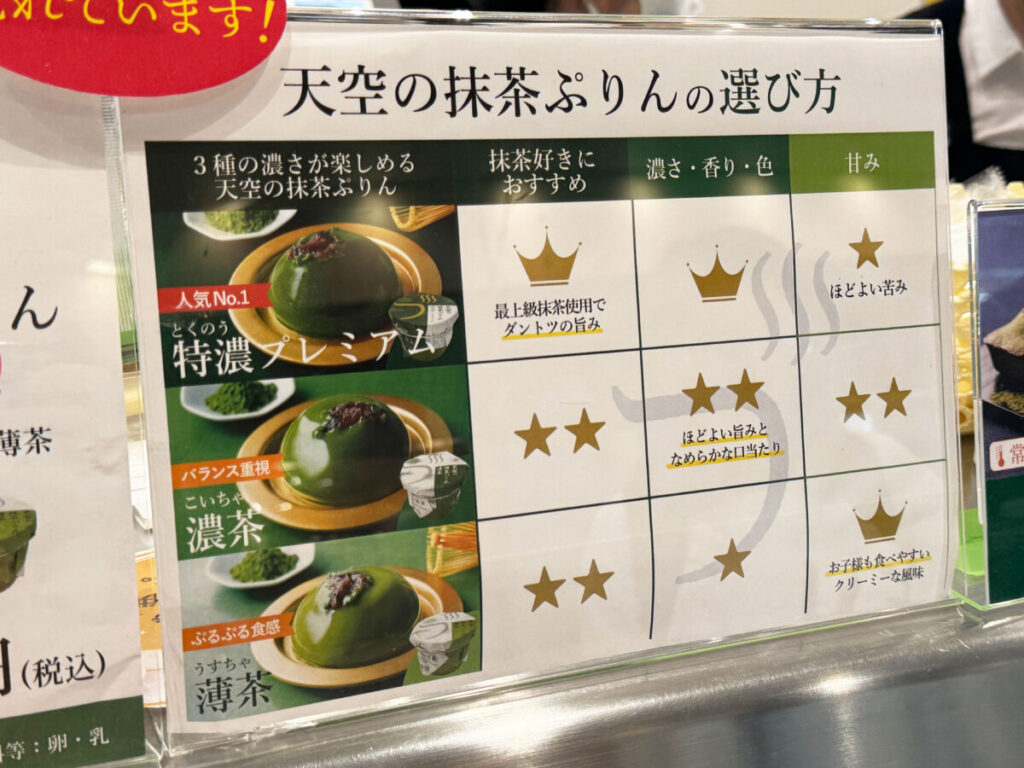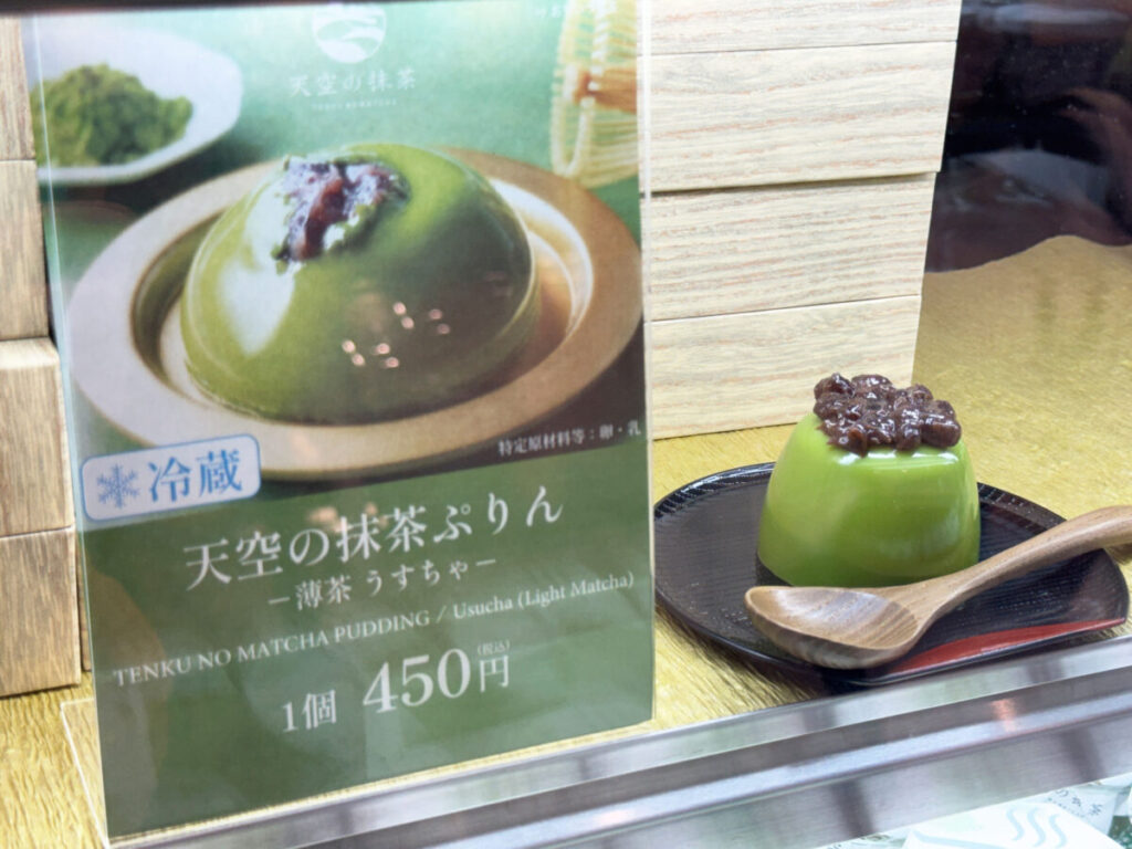 お店の前でまず目に飛び込んできたのが「天空の抹茶ぷりん」という、なんとも気になるネーミング。