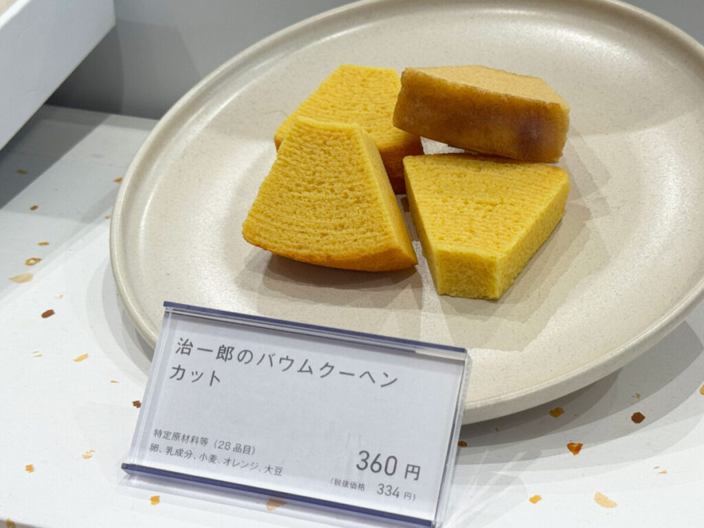 まずは、バウムクーヘンをはじめとしたこだわりのお菓子の「治一郎」!