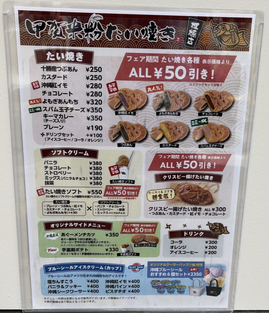 オープン日から29日までは、たい焼き全品50円引きなどキャンペーンがあるようですね♪
