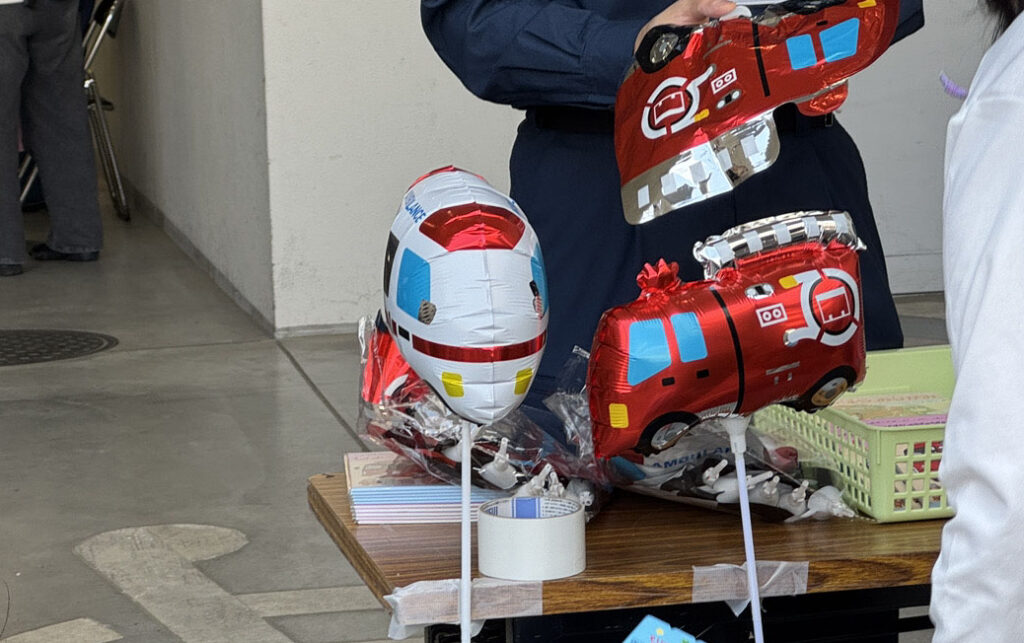 どうやら、風船とサンバイザー配っているみたい。