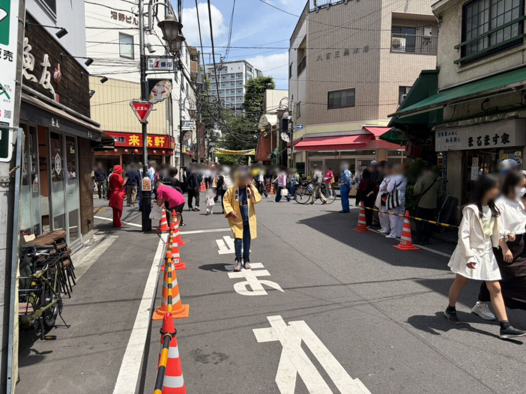 赤羽馬鹿祭りパレード直前、赤羽小学校&まるます家前。11:45の様子。