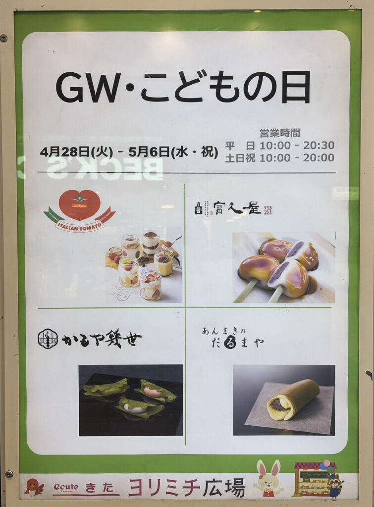 今回のエキュート赤羽きたのヨリミチ広場は「GW・こどもの日」!