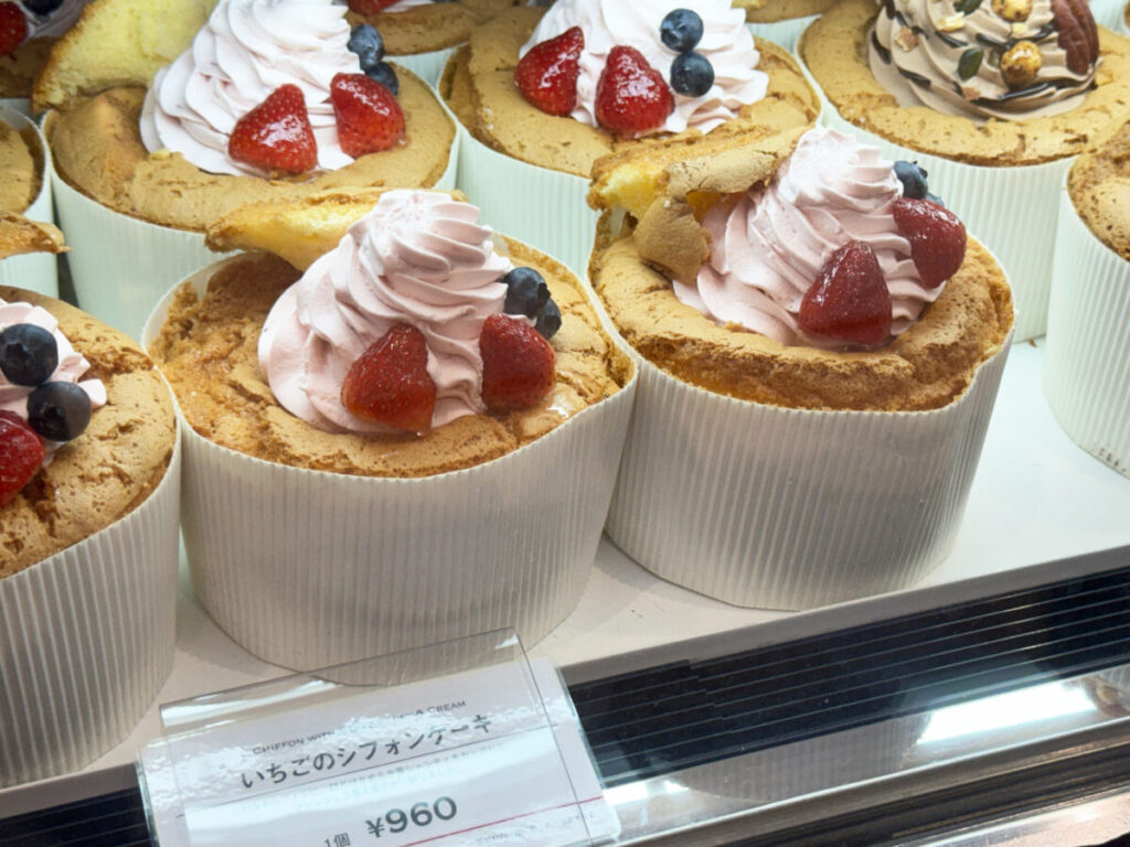 実際に見てみると、シフォンケーキめっちゃ大きいんですよ、これ。手のひら大サイズはあるんじゃないかと。