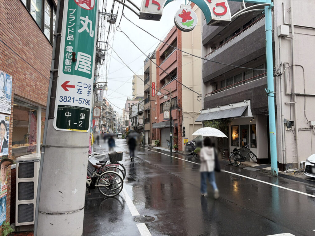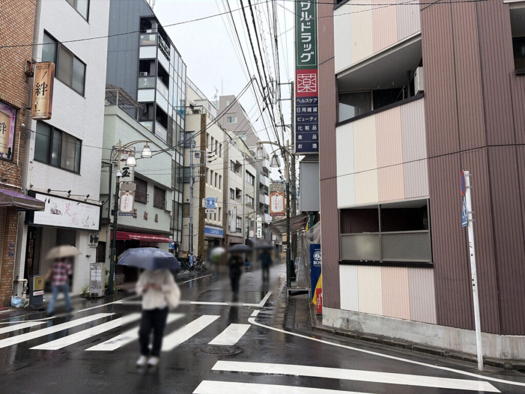 お店を背にして右はこんな感じ。すぐに「ユニバーサルドラッグ」があり、さらに行くとJR駒込駅東口改札があります。