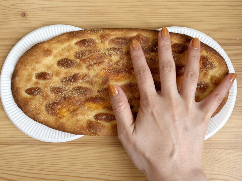 手のひらから余裕ではみ出すくらいデカいっ!!30センチの紙皿を2枚使ってます(笑)