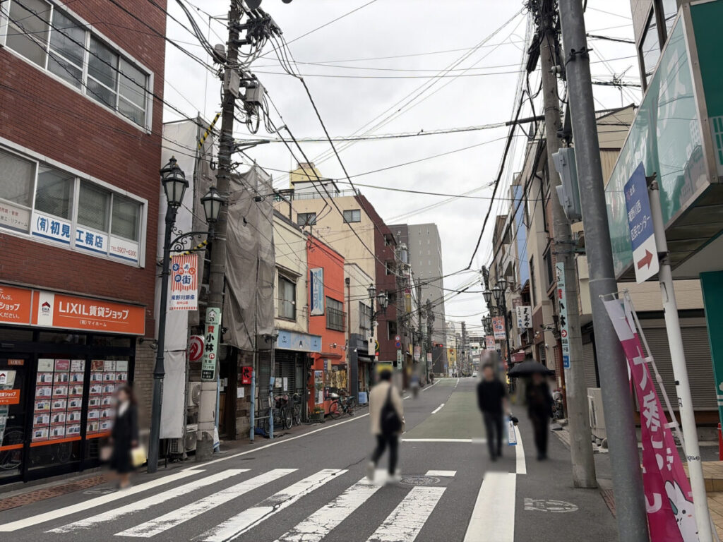 お店を背にして右はこんな感じ。すぐに居酒屋「松月」や「どらっぐぱぱす 板橋1丁目店」があり、踏切を渡ると板橋駅西口に出ます。