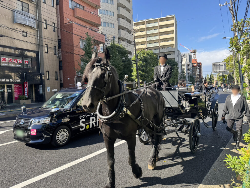 七社神社・滝野川警察署前に馬車を待つ人がちらほら。