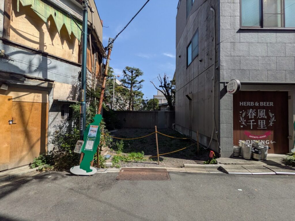王子の柳小路商店会の路地に更地ができてました。再開発の足音か?