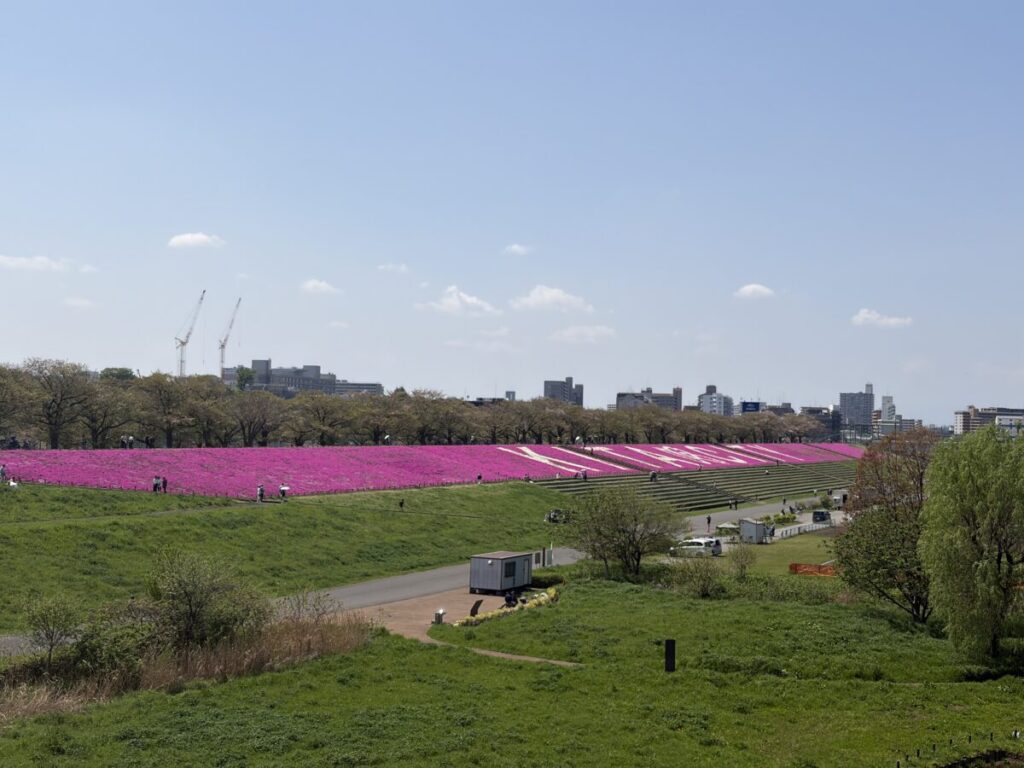 【北区】新荒川大橋の芝桜、めっちゃ見ごろ!「KITA・CITY」がくっきり浮かび上がってた!