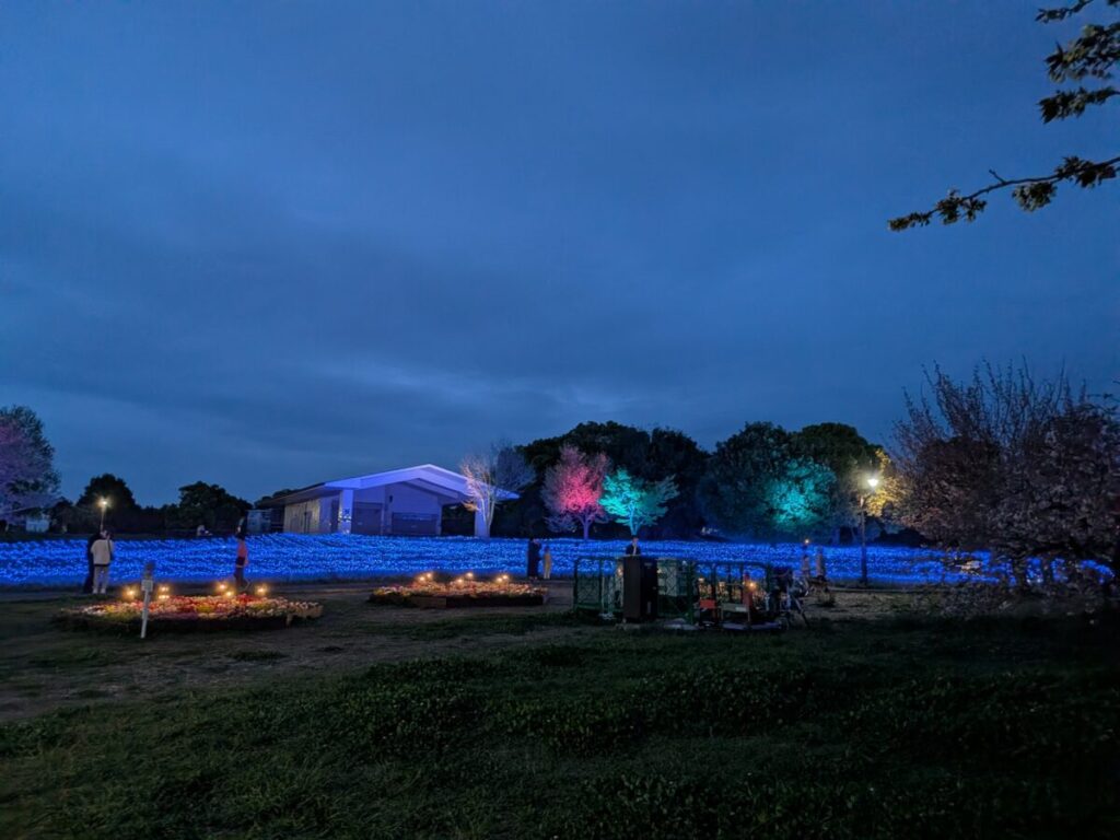【足立区】舎人公園のネモフィラライトアップ2026まとめ!見どころや実際の様子を紹介!今年もめっちゃキレイだった~。